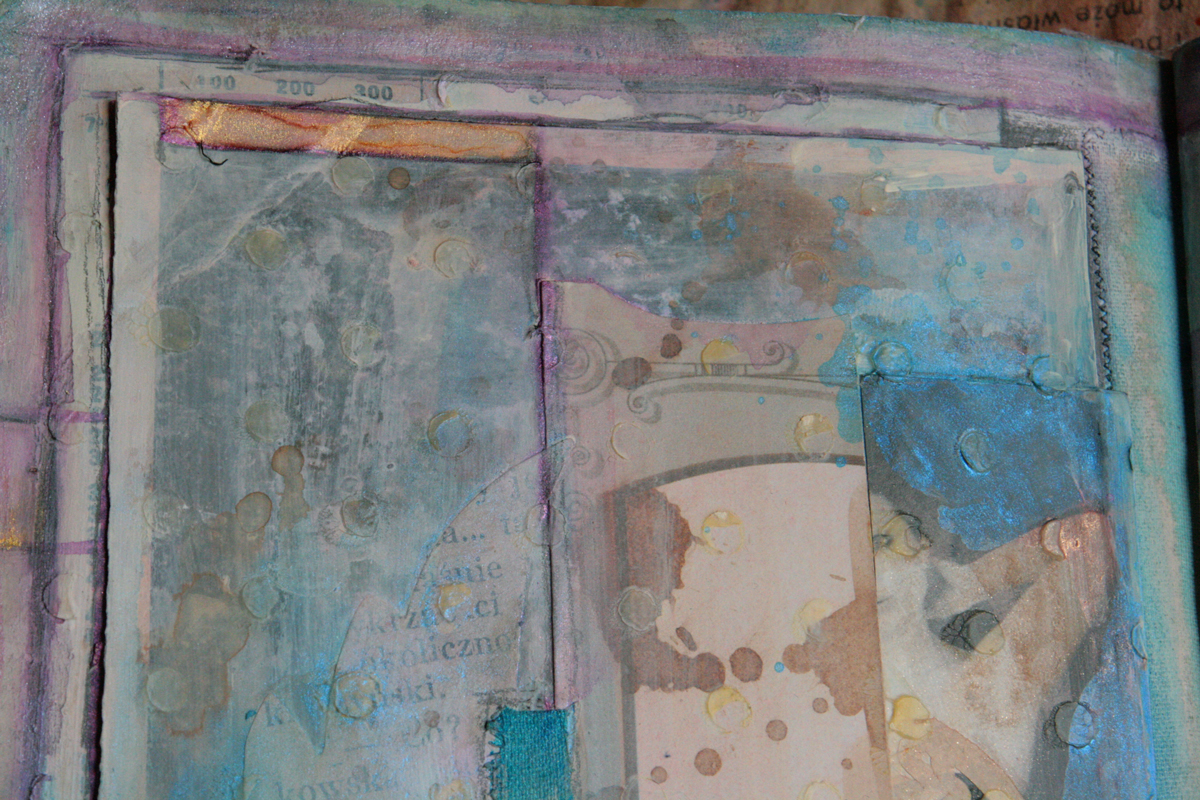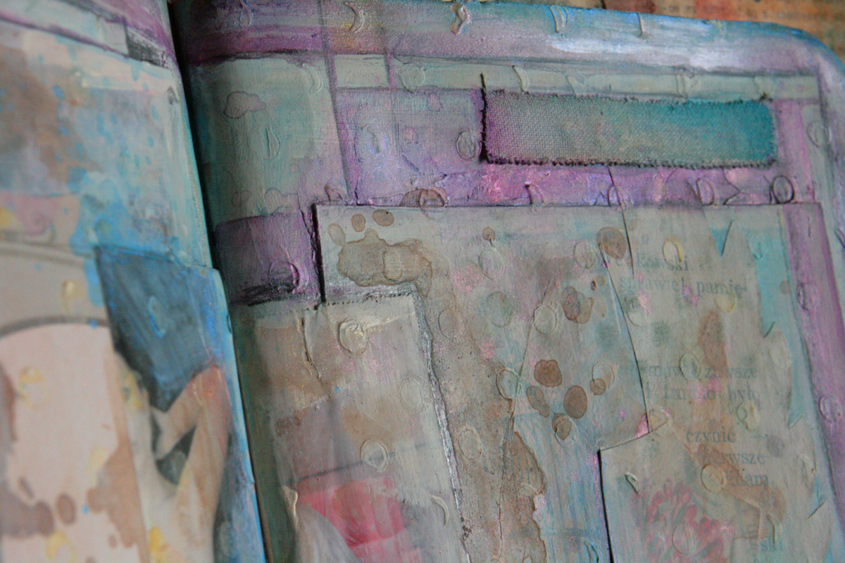 Żeby ujednolicić naklejone kawałki papieru zagruntowałam je jeszcze raz.