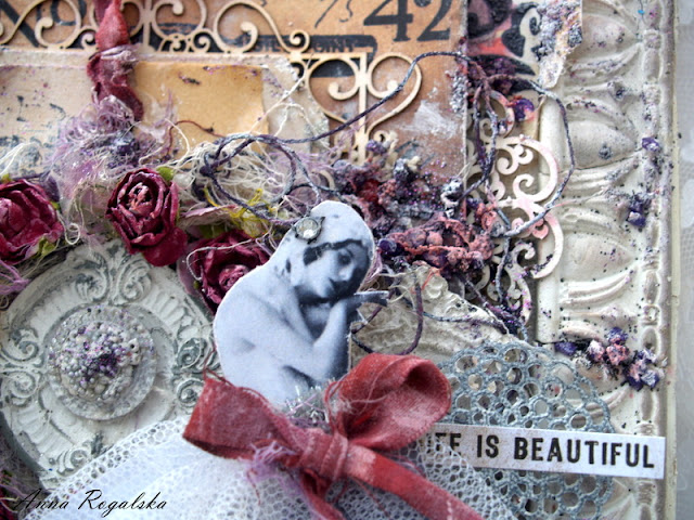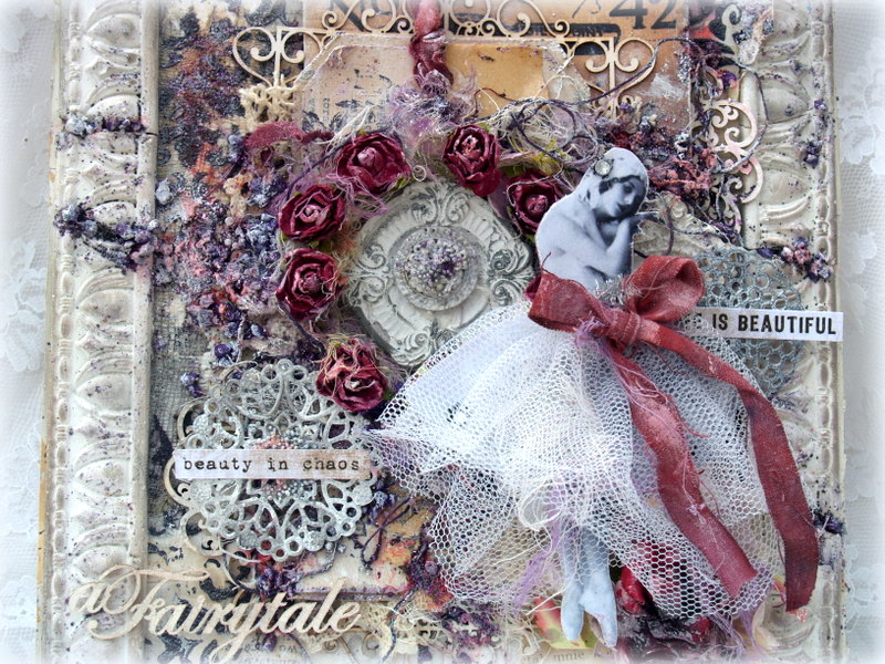 I just wanted to have fun playing with beautiful Prima flowers, 7 Dots Studio papers, silicone molds and chipboard.