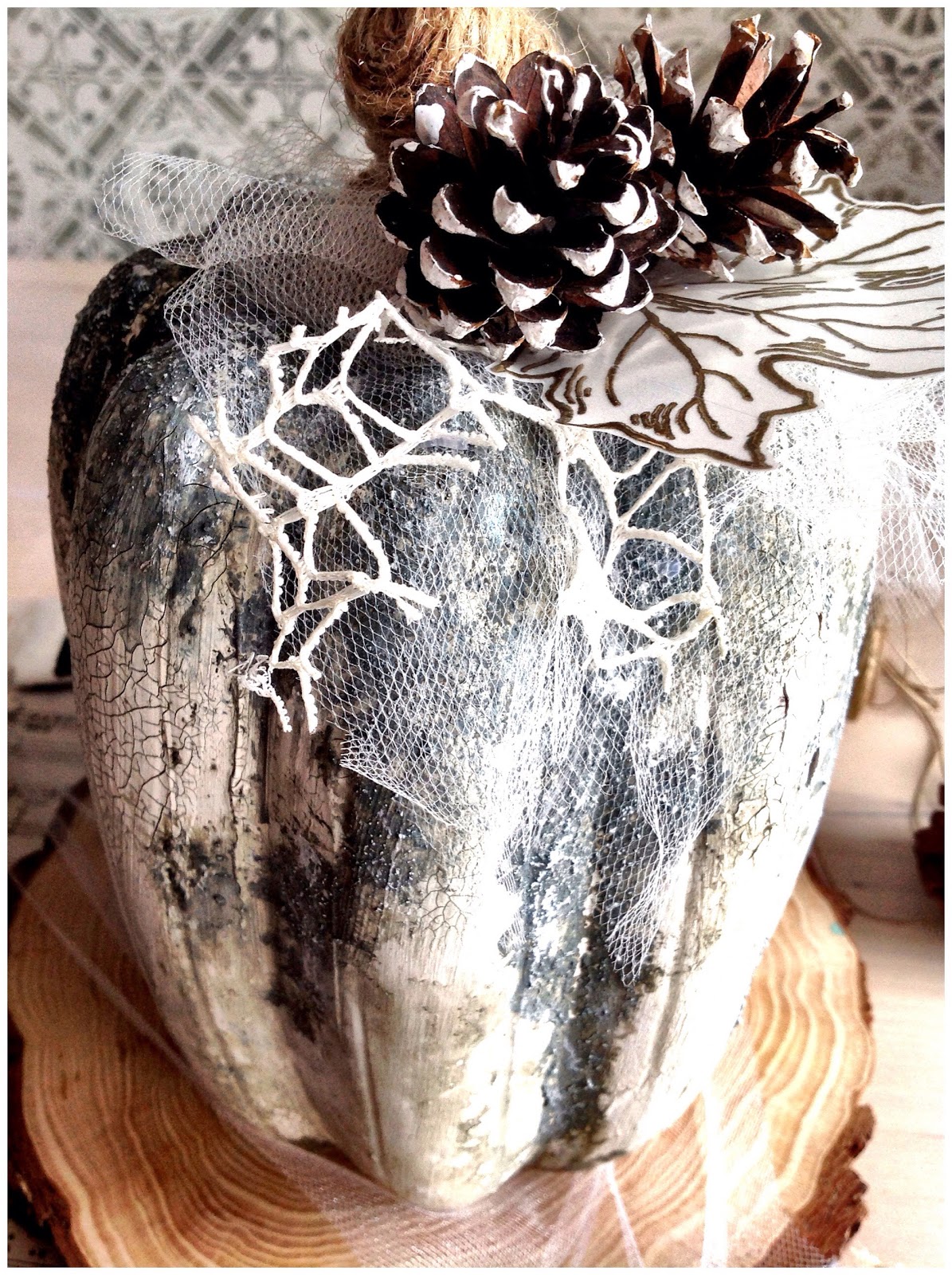 A few months ago I moved and I love changing the decoration of the house depending on the season. Tthe truth is that it was not easy to find pumpkins to alter but in the end I got two! And this is one of them.