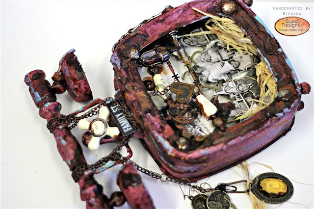 Bipasha is our November Guest Designer. She loves to create dimensional projects, so she did one for us. Below you can see an amazing example of layering and creating textures. Bipasha has combined many different media - alcohol ink, distress inks, heavy gesso, texture pastes, Rust Effect Paste with Finnabair Mechanicals and 7 Dots Studio papers - the effect is just stunning!! If you want to see more of her projects, visit her blog, facebook profile, instagram and pinterest account.