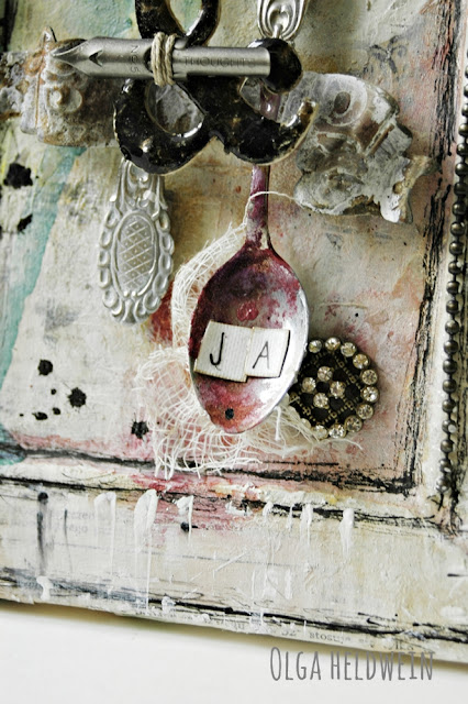 Praca powstała pod wpływem twórczości i warsztatów Agnieszki Anny . Na pewno widać to gołym okiem.  Użyłam tu sporo Mediów i Gesso na 3 sposoby.