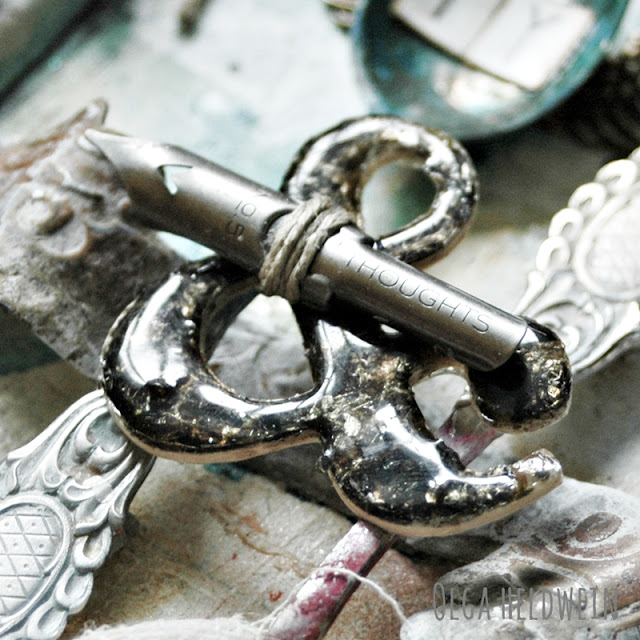 To finish my background I used H2O paints. Mixed with gesso they add a little bit of shine but they still change colors in a sun and it is a very nice effect ! Spoons are finished with alcohol inks. "&" sign is made with utee and mica slices - It looks amazing :) and it shines a lot ;)