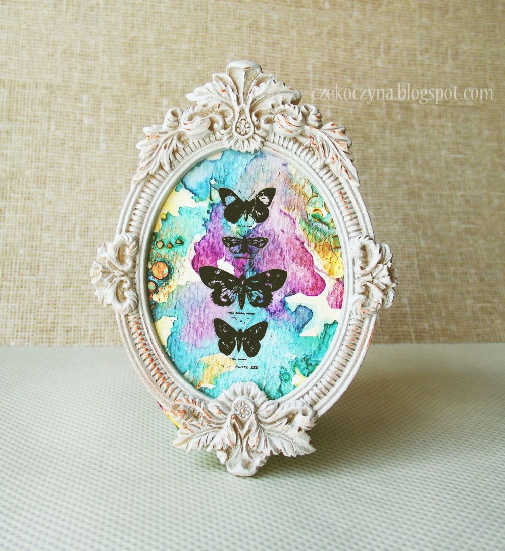 Hello! Kasia here with something very colourful for you. This time I prepared tiny frame using Twinkling H2Os, gesso and gel medium.