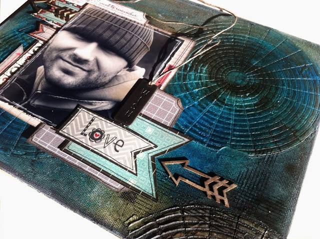 A little bird is a result of a spontaneous weird experiment;) I stamped it with clear ink on a greenish paper from The Queen's Heart collection, and then melted clear embossing powder on it. Then I wanted to add color and covered the whole thing with a purple PanPastel... and it practically covered everything... So I decided to remove it with a wet wipe;) Doing that I also removed a layer of colored paper that has not been covered with clear embossing powder... But I decided I like the effect, so the experimental bird settled in my art-journal