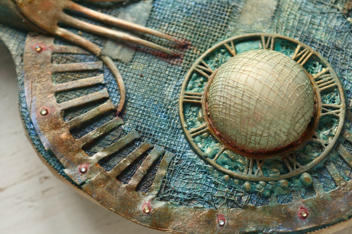 This time I was brave creating the background from start to finisih. Modeling paste, gel medium,